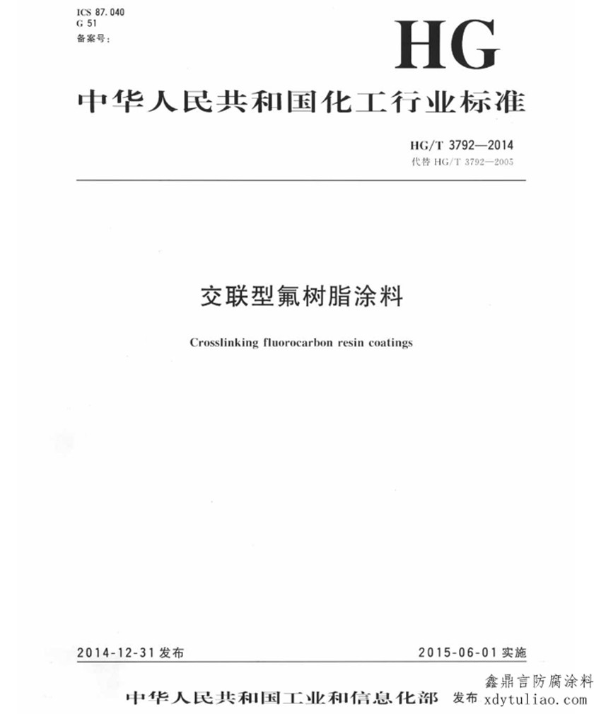 交聯(lián)型氟樹(shù)脂涂料標(biāo)準(zhǔn)HG/T 3792-2005是鑫鼎言氟碳漆按照紙質(zhì)版HG/T 3792-2005《交聯(lián)型氟樹(shù)脂涂料》一個(gè)字一個(gè)字碼出來(lái)的,屬于原文照搬請(qǐng)放心參考。