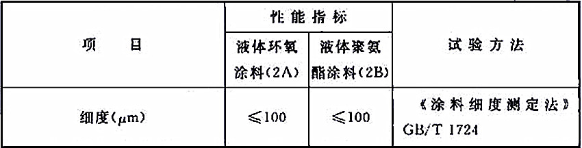 2 涂料的兩個(gè)組分應(yīng)由同一生產(chǎn)商配套提供,涂料性能應(yīng)滿(mǎn)足本規(guī)范表2.1、表2.2-1或表2.2-2規(guī)定的性能指標(biāo)。