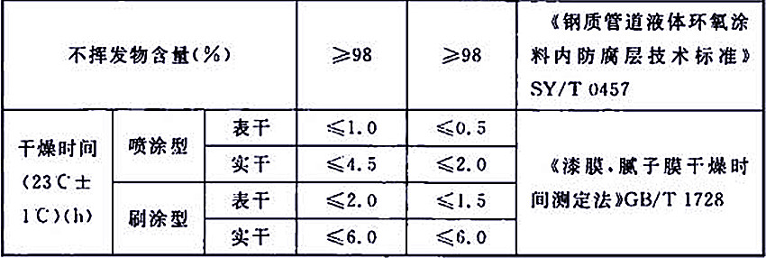 2.1 補(bǔ)口用雙組分無(wú)溶劑環(huán)氧涂料和雙組分無(wú)溶劑聚氨酯涂料性能應(yīng)滿(mǎn)足表2.1的要求。