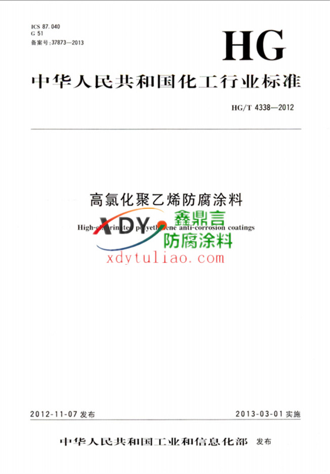 高氯化聚乙烯防腐涂料標(biāo)準(zhǔn):HG/T 4338-2012