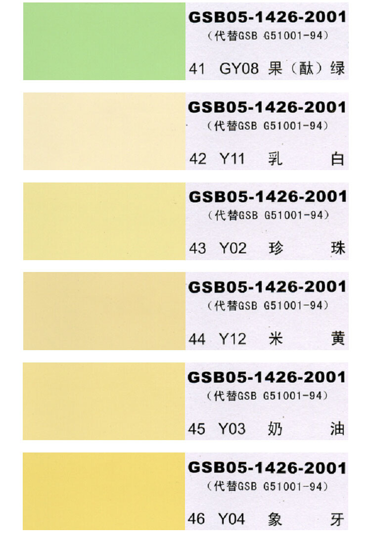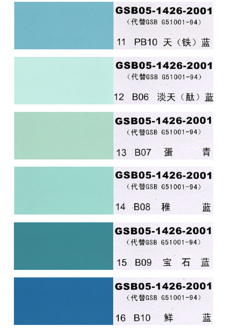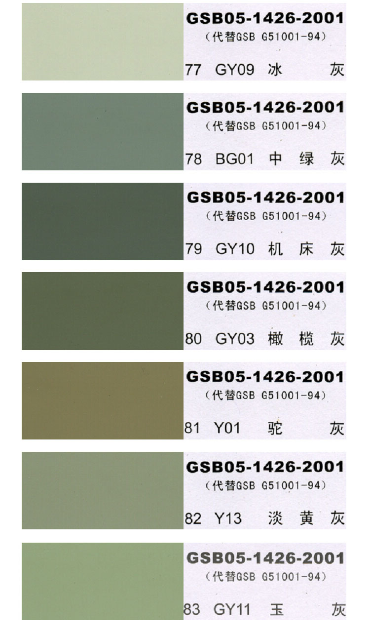 1、本國(guó)標(biāo)色卡(GSB05-1426-2001)可能會(huì)因顯示器的問題,給出的顏色色相與實(shí)際防腐漆色相比可能會(huì)有差異,請(qǐng)客戶理解!