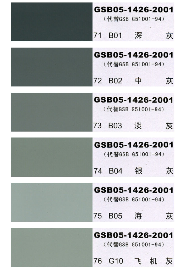 4、本國(guó)標(biāo)色卡(GSB05-1426-2001)適用于定做博凱防腐涂料廠生產(chǎn)的XDY防腐漆系列:氟碳漆、石墨烯漆、納米漆、聚氨酯漆、丙烯酸漆、環(huán)氧面漆、氯化橡膠漆、氯磺化聚乙烯漆、高氯化聚乙烯漆等可調(diào)色防腐漆品種。